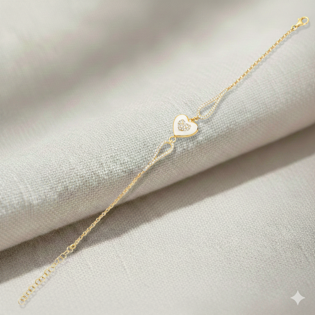 Heart Design White Enamel CZ Stone Bracelet - 2.35 g
