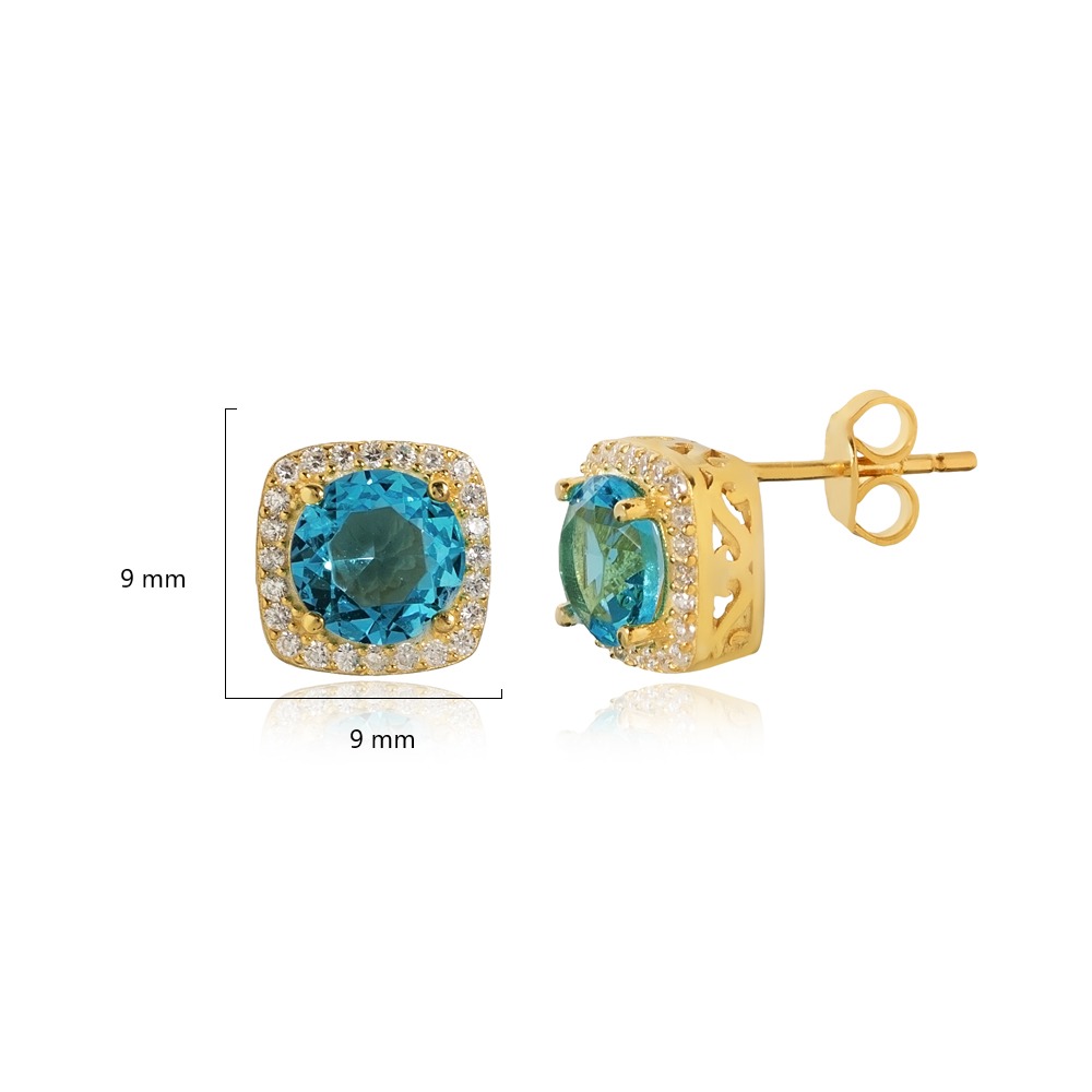 Square Shape Round Aquamarine CZ Stud Earring - 2.65 g