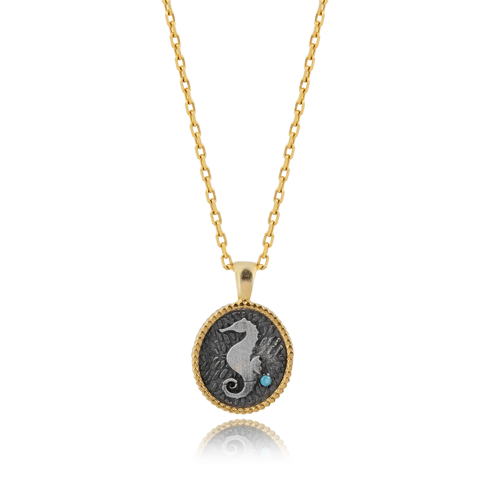 Capture the magic of the ocean with this Seahorse Design 925 Silver Charm Necklace, delicately handcrafted by skilled Turkish artisans. The seahorse, a timeless symbol of patience, strength, and protection, is beautifully detailed in premium 925 sterling silver, reflecting the fine artistry of Turkish handmade jewelry. Its elegant and intricate design makes it a meaningful accessory for ocean lovers, adding a touch of marine-inspired charm to any outfit while embodying balance and serenity. Perfect for wholesale jewelry suppliers, boutique collections, or personal adornment, this handcrafted sterling silver seahorse necklace is ideal for everyday wear or as a thoughtful gift for someone special. Combining coastal elegance with spiritual symbolism, it stands as a fine example of artisan craftsmanship and lasting quality. Lightweight, durable, and timeless, this necklace is a must-have for those who appreciate unique and symbolic silver jewelry.