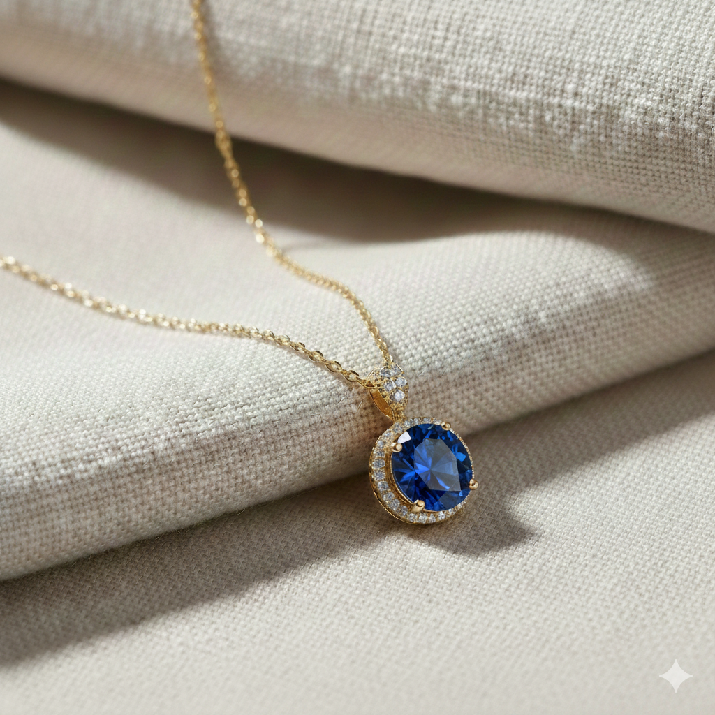 Round Design Sapphire CZ Charm Necklace - 2.65 g