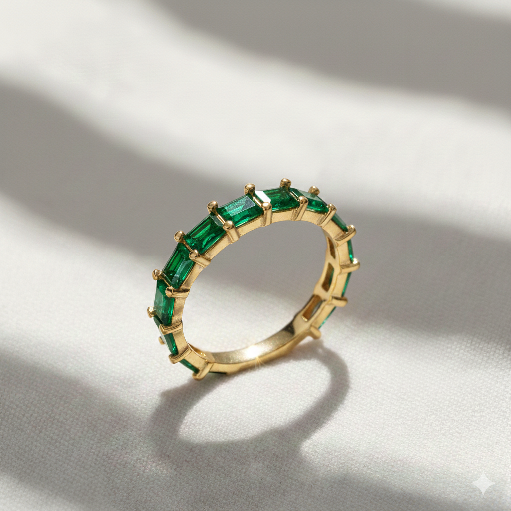 Emerald Baguette Ring Turkish 925 Silver - 2.30 g