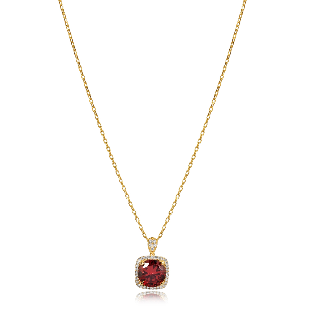 Square Shape Round Garnet CZ Charm Necklace - 3.35 g