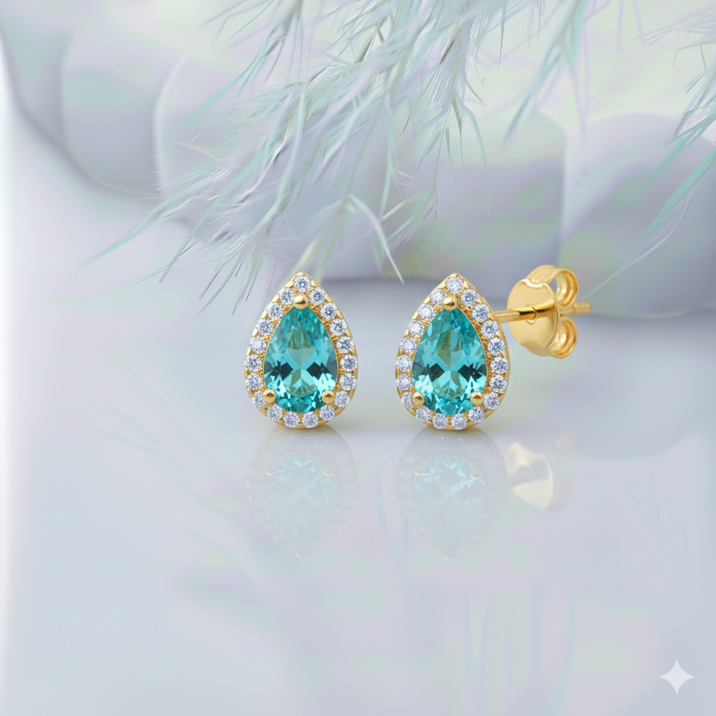 Pear Design Aquamarine CZ Stone Stud Earring - 2.00 g