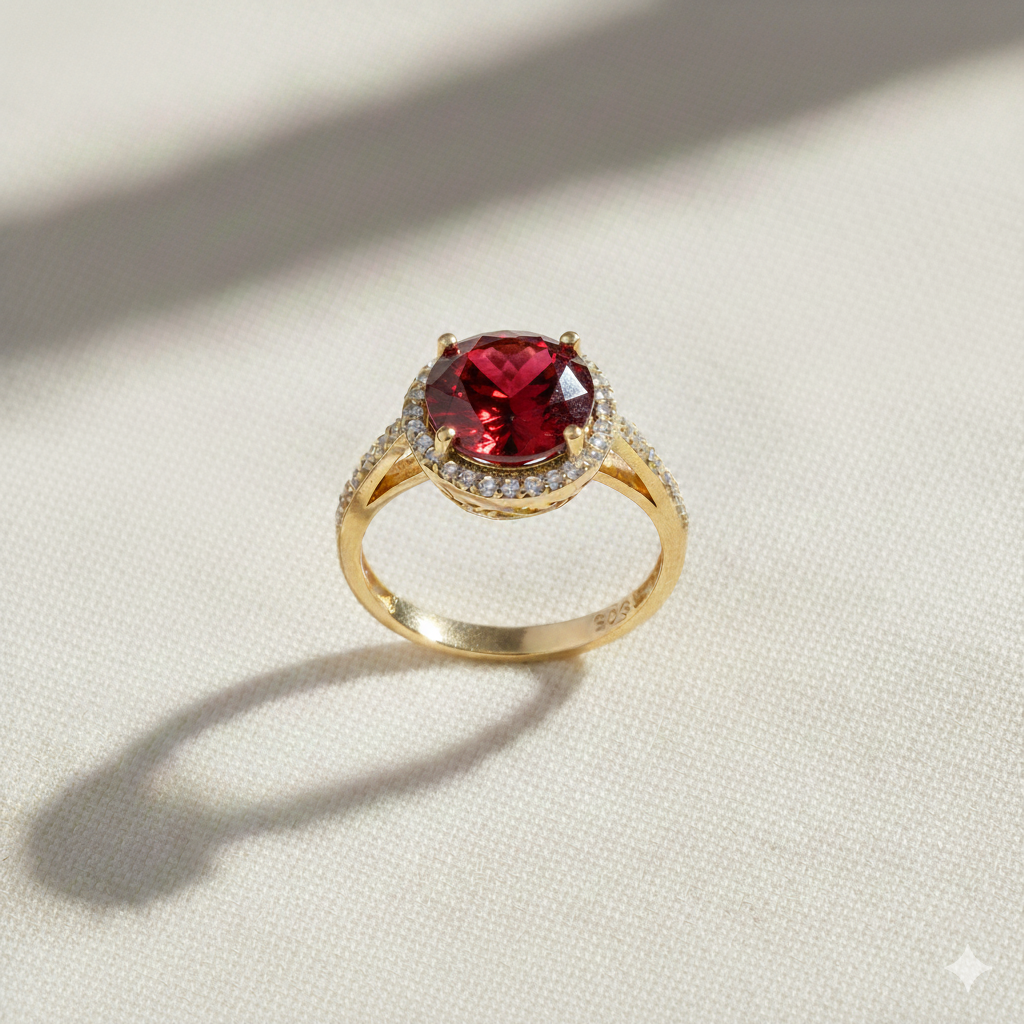 Round Design Garnet CZ Stone Cluster Ring - 3.65 g