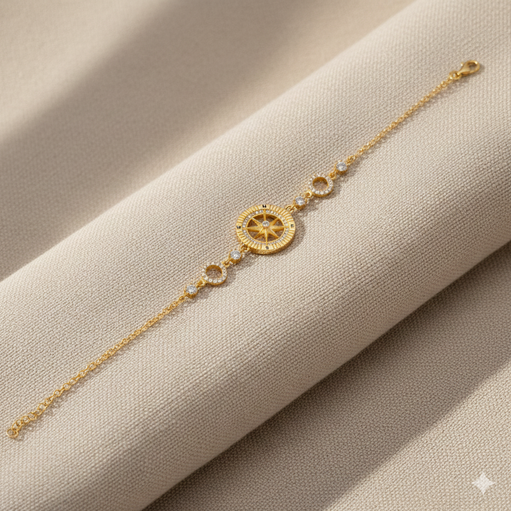 Round North Star Design CZ Charm Bracelet - 3.30 g