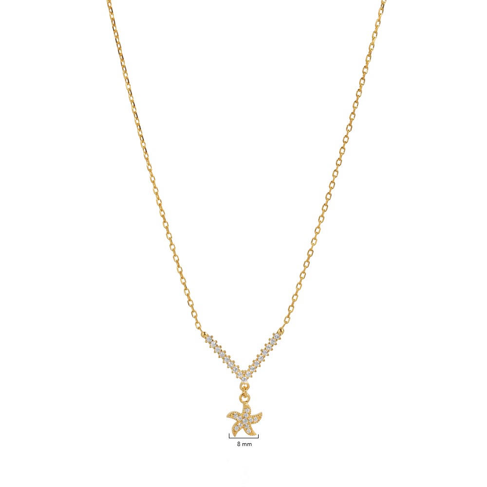 Starfish Shape CZ Stone Charm Necklace - 3.25 g