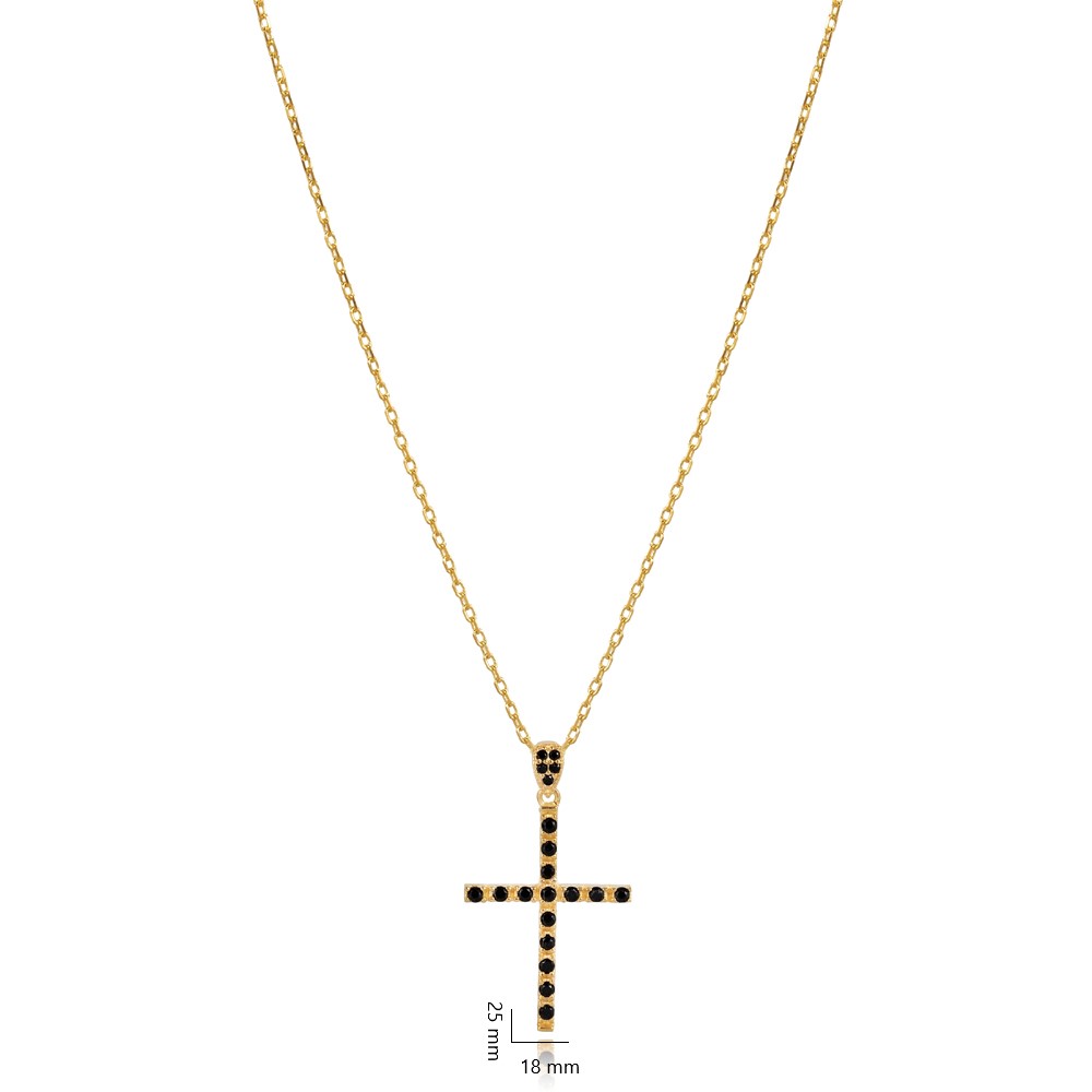 Black CZ Stone Cross Design Charm Necklace - 2.40 g