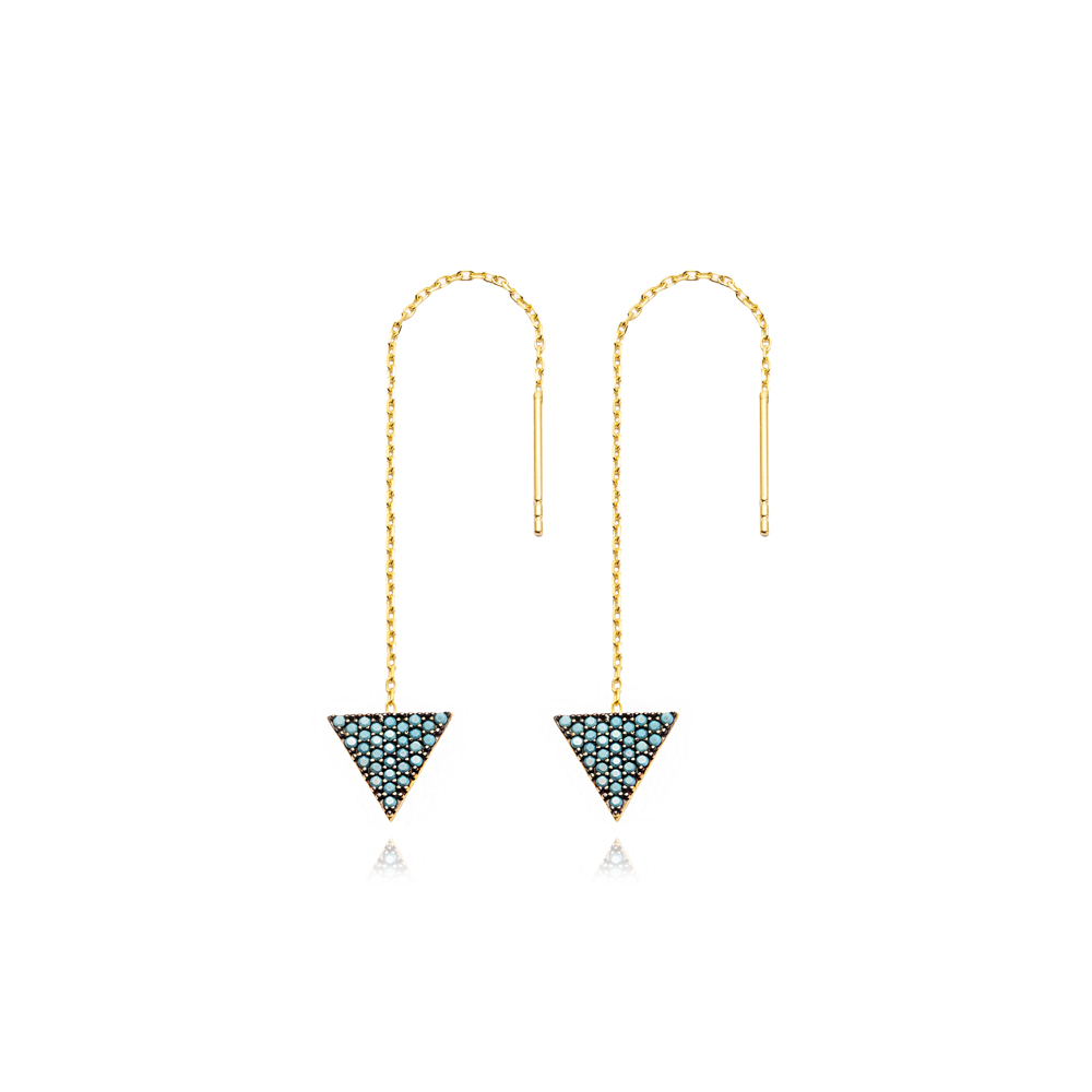 Add a bold geometric touch to your collection with our Nano Turquoise Ear Triangle Design Threader Earring, handcrafted in Turkey from high-quality 925 sterling silver. This modern design features a sleek triangle charm accented with vibrant nano turquoise stones, offering a fresh and stylish look for women who love minimalist jewelry with a colorful edge. The threader chain adds light movement and effortless elegance.
