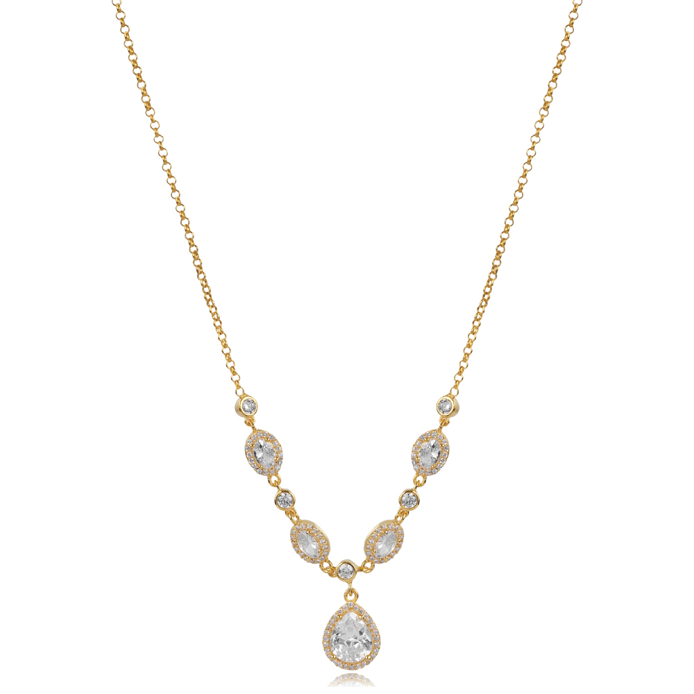 Pear And Oval Design Zircon Stone Shaker Necklace - 7.85 g