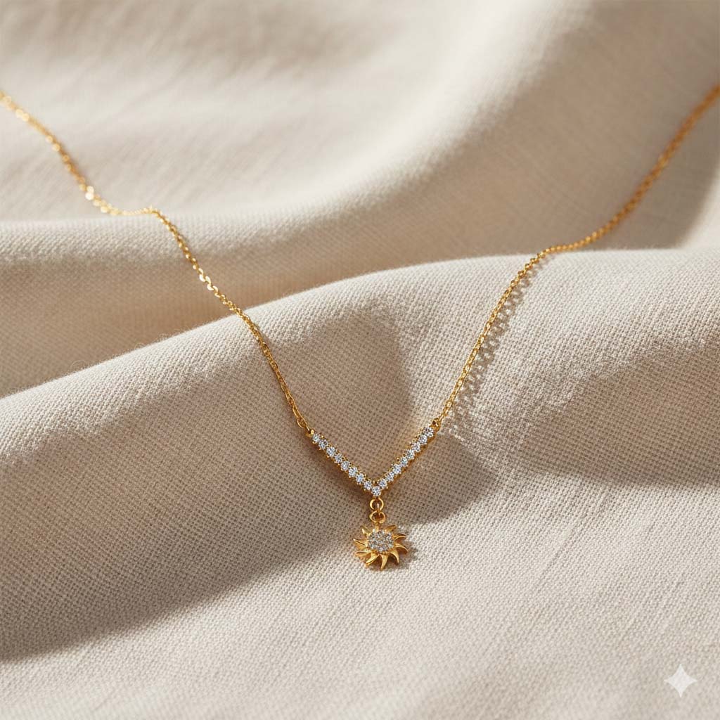 Sun Figure Design CZ Stone Charm Necklace - 3.25 g