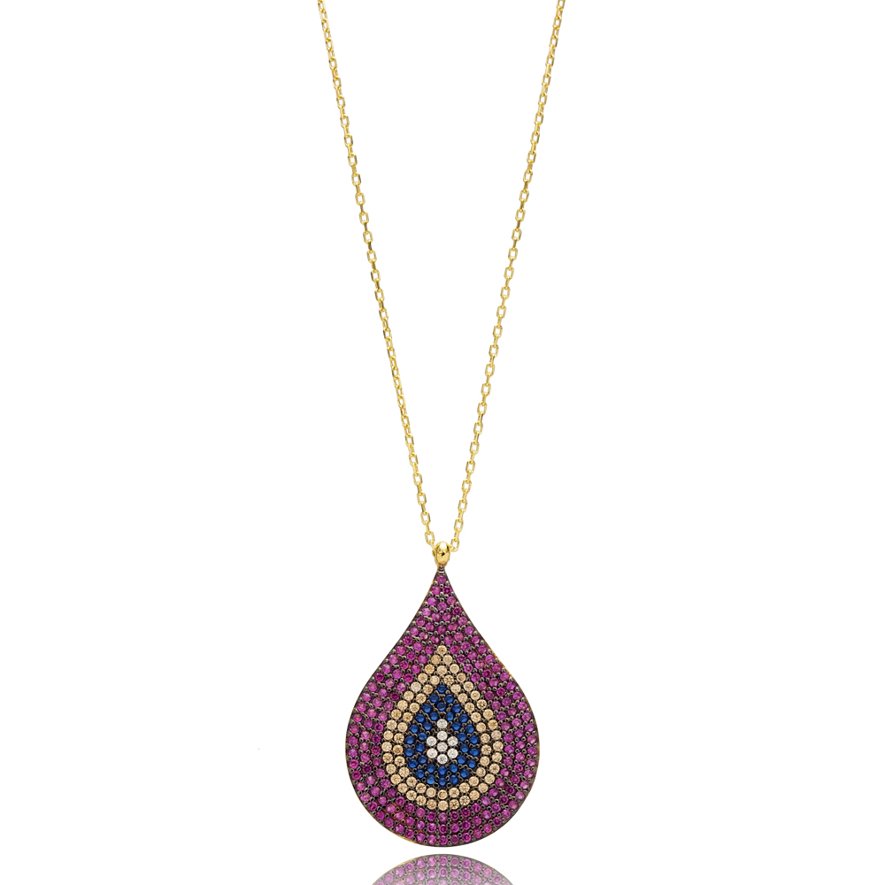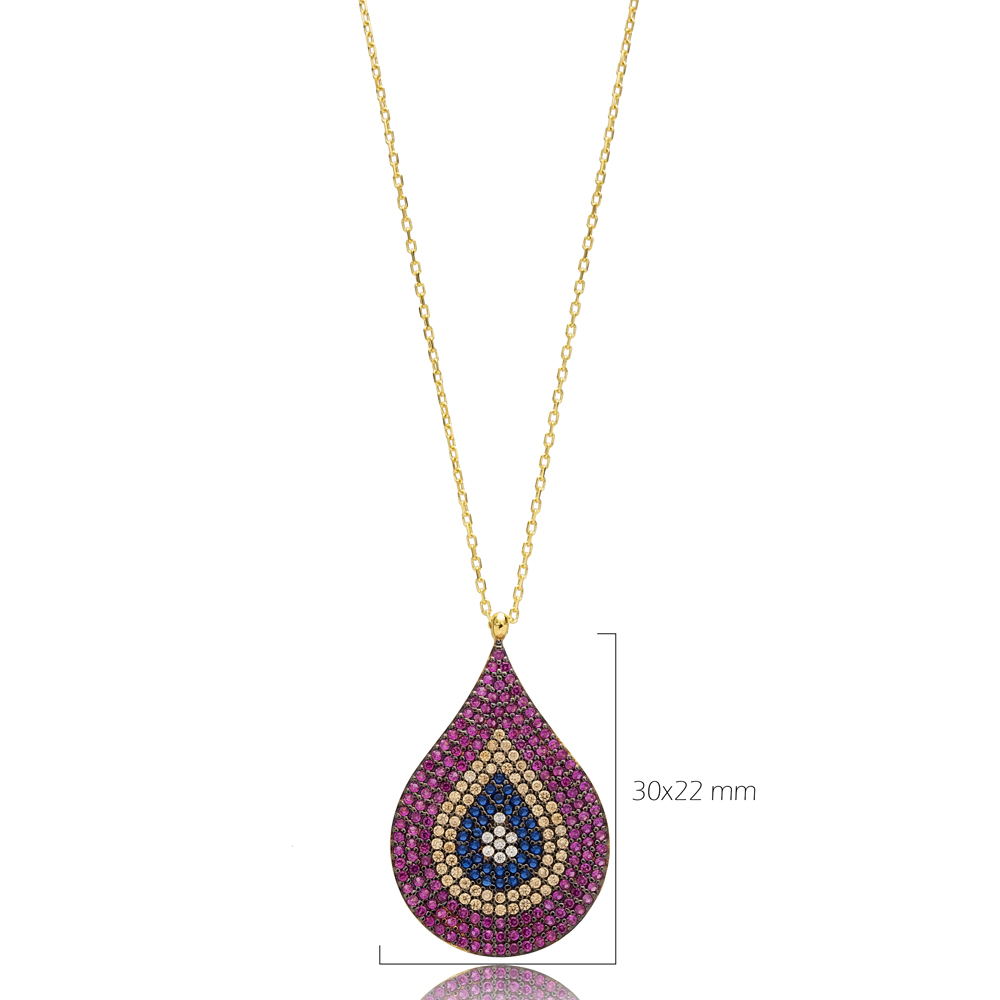 Drop With Evil Eye Design Turkish Wholesale Handmade 925 Sterling Silver Pendant - 4.85 g