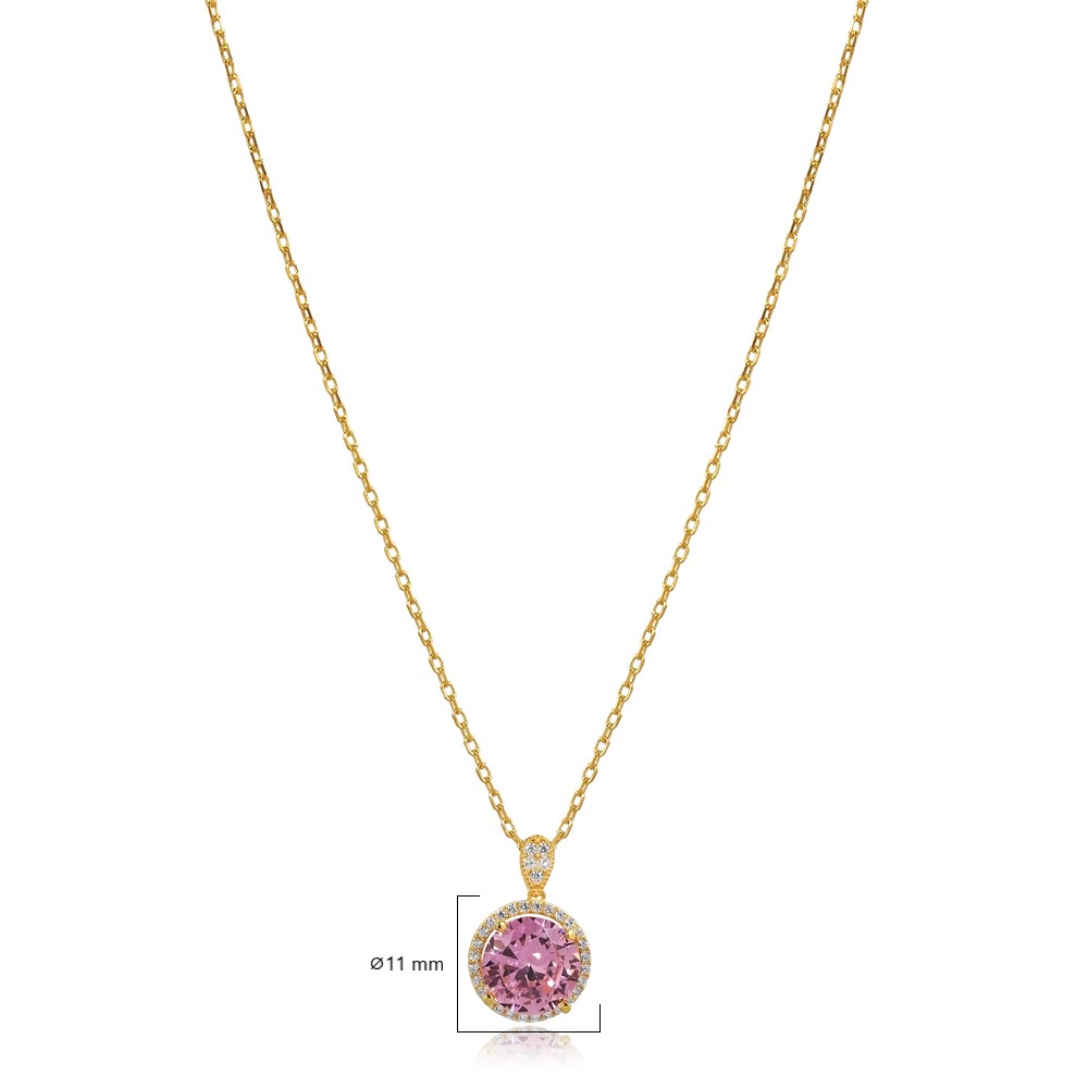 Round Design Pink CZ Stone Charm Necklace - 3.20 g