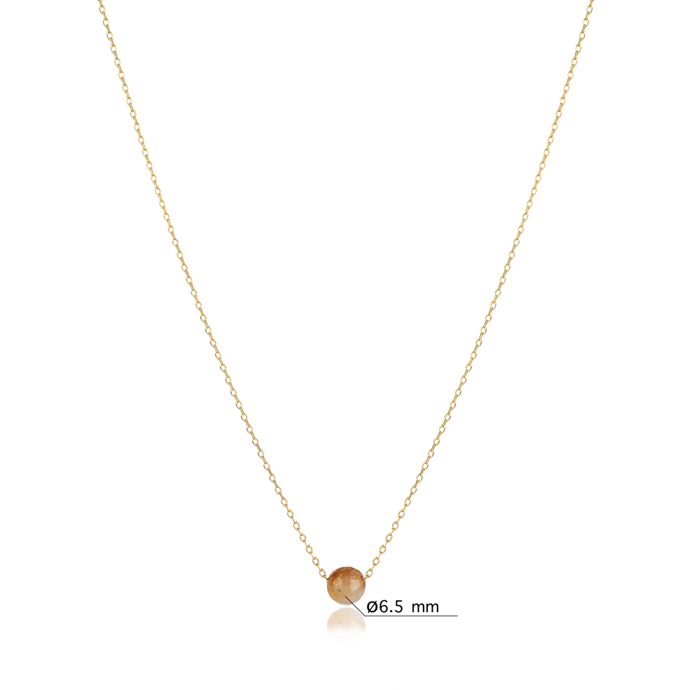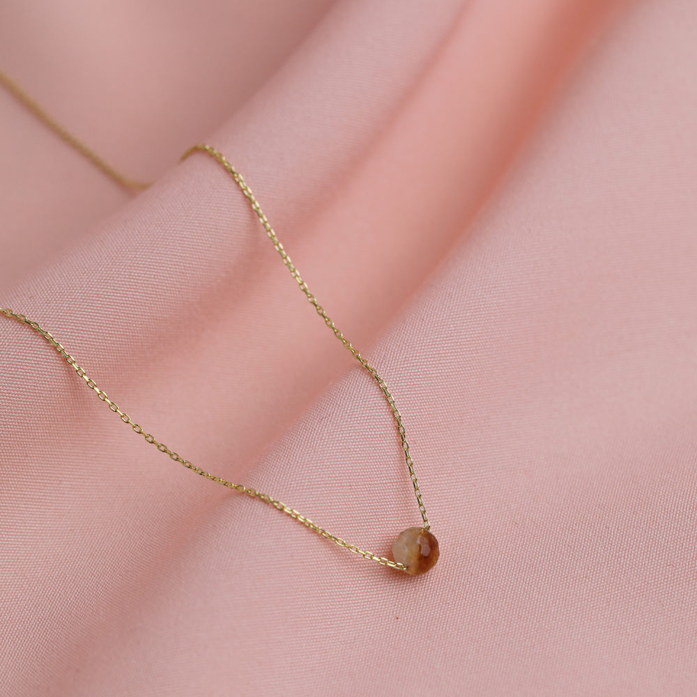 Round Citrine Stone Design Charm Necklace - 1.75 g