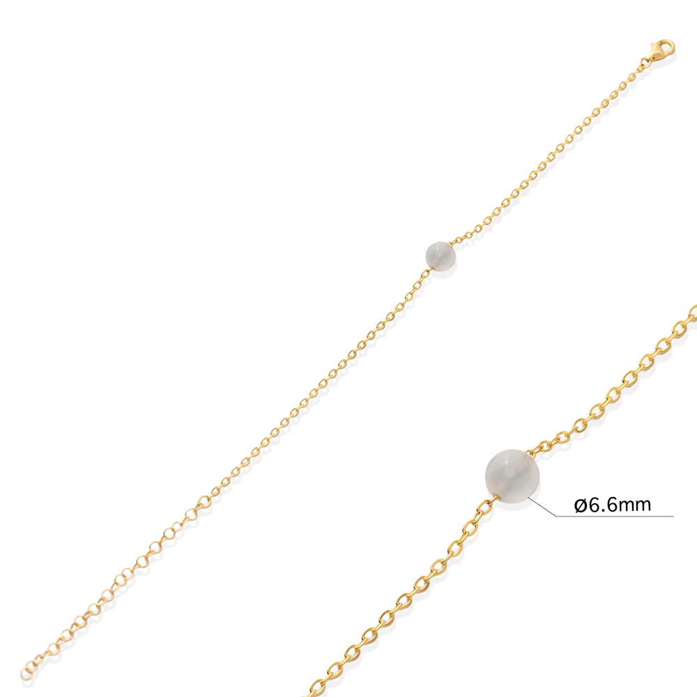 Round White Stone Design 925 Charm Bracelet - 1.70 g