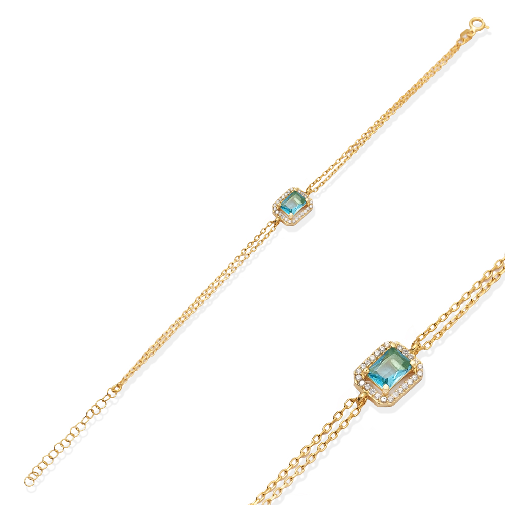 Baguette Aquamarine CZ Stone Charm Bracelet - 2.45 g