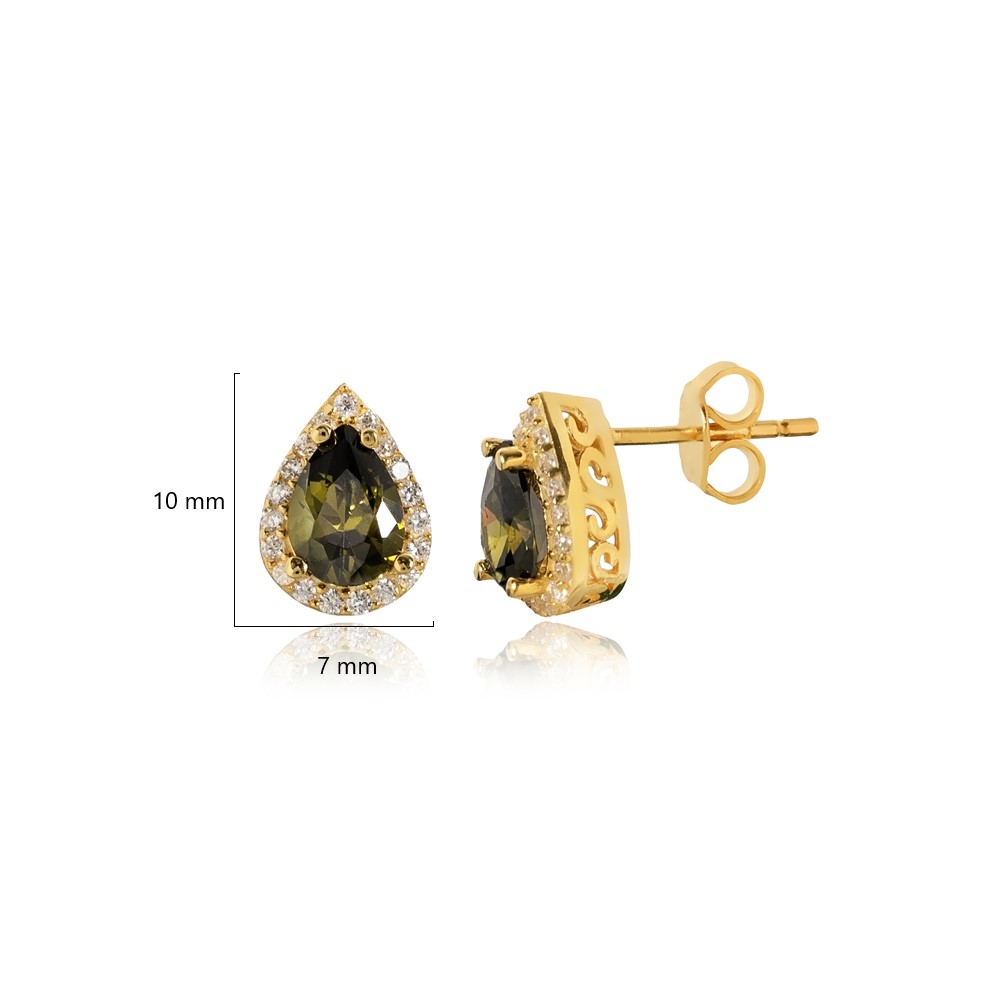 Pear Design Peridot CZ Stone Stud Earring - 2.20 g