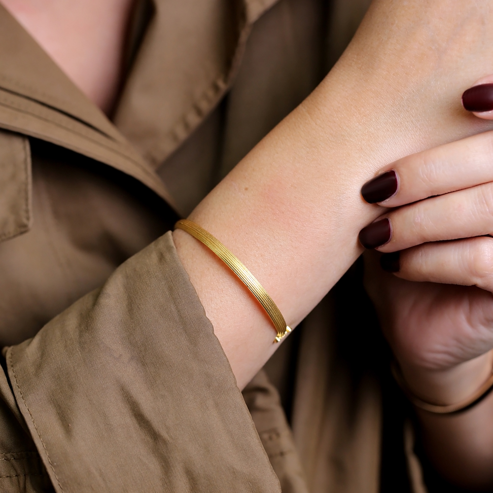 22K Gold Plated Plain Adjustable Sterling Silver Vintage Bangle - 9.55 g