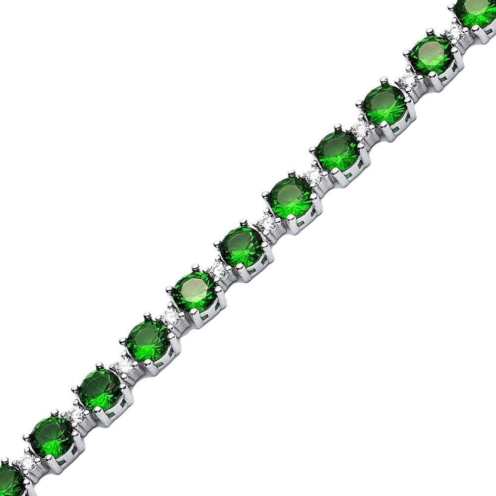 Emerald CZ Stone Round Shape Silver Tennis Bracelet - 12.80 g