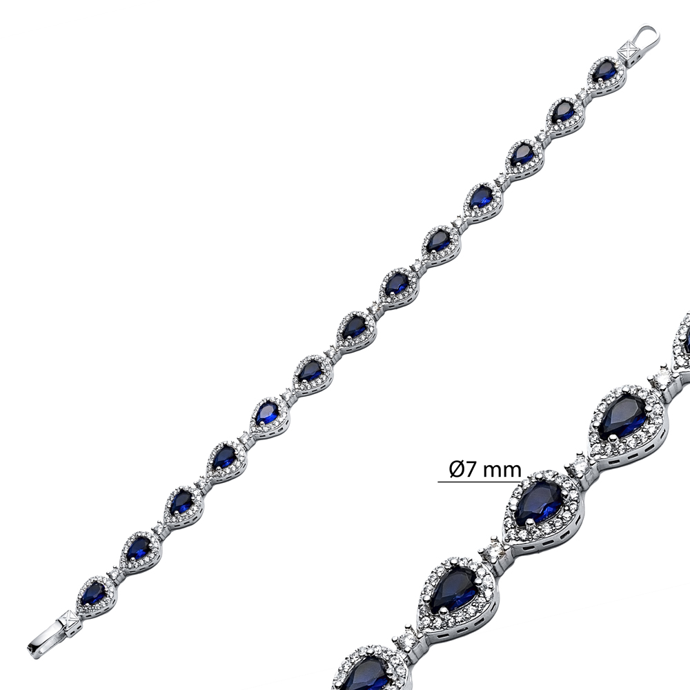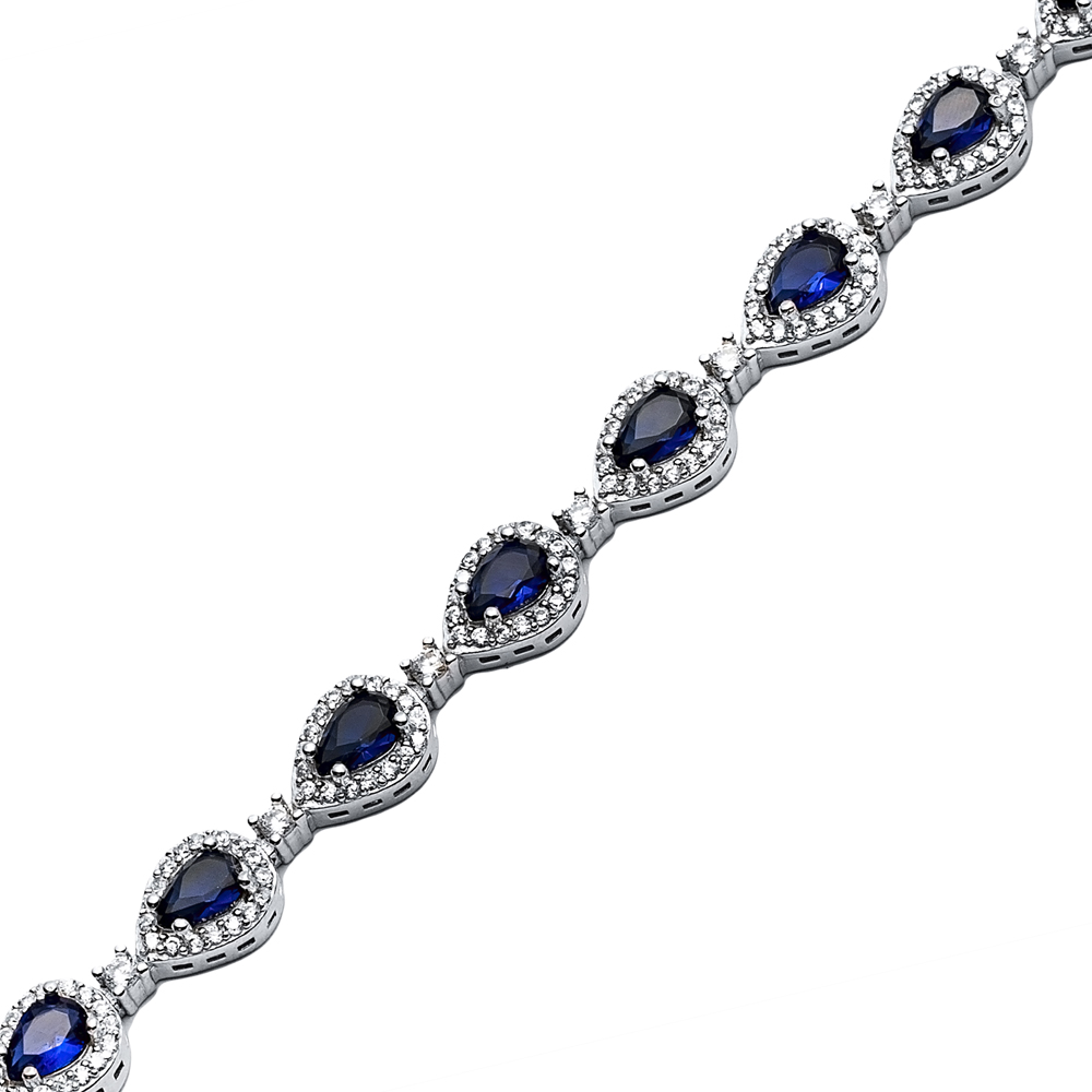 Pear Drop Sapphire CZ Stone Dainty Sterling Silver Tennis Bracelet - 12.25 g
