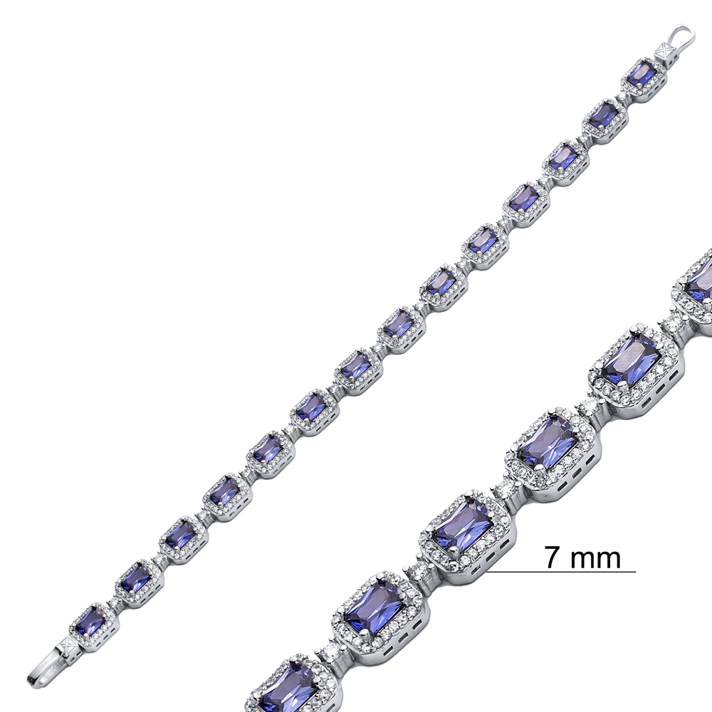 Tanzanite CZ Stone Rectangle Shape Silver Tennis Bracelet - 15.75 g