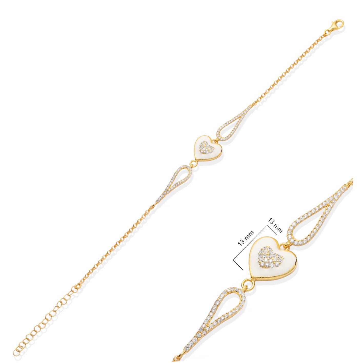 Heart Design White Enamel CZ Stone Bracelet - 2.35 g
