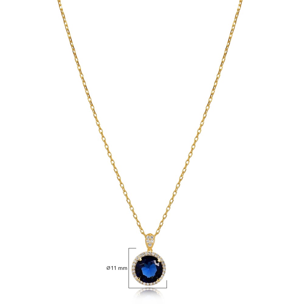 Round Design Sapphire CZ Charm Necklace - 2.65 g