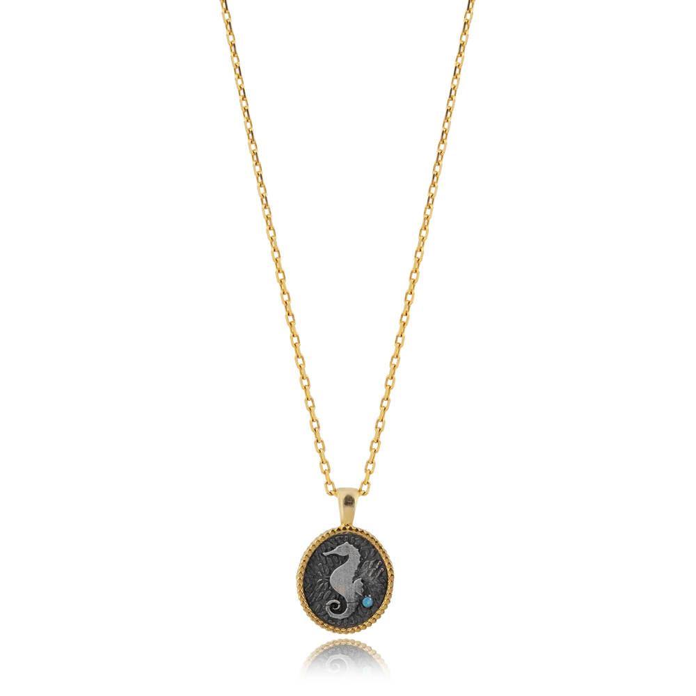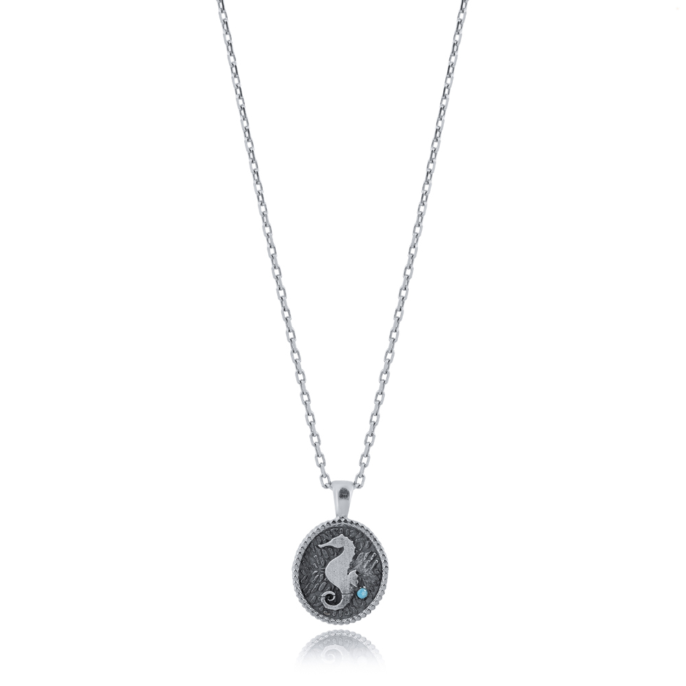 Capture the magic of the ocean with this Seahorse Design 925 Silver Charm Necklace, delicately handcrafted by skilled Turkish artisans. The seahorse, a timeless symbol of patience, strength, and protection, is beautifully detailed in premium 925 sterling silver, reflecting the fine artistry of Turkish handmade jewelry. Its elegant and intricate design makes it a meaningful accessory for ocean lovers, adding a touch of marine-inspired charm to any outfit while embodying balance and serenity. Perfect for wholesale jewelry suppliers, boutique collections, or personal adornment, this handcrafted sterling silver seahorse necklace is ideal for everyday wear or as a thoughtful gift for someone special. Combining coastal elegance with spiritual symbolism, it stands as a fine example of artisan craftsmanship and lasting quality. Lightweight, durable, and timeless, this necklace is a must-have for those who appreciate unique and symbolic silver jewelry.