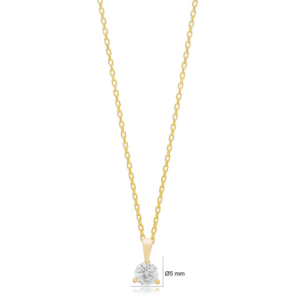 Round Three Claw Zircon Stone Charm Necklace Pendant Wholesale Turkish 925 Sterling Silver Jewellery - 1.95 g
