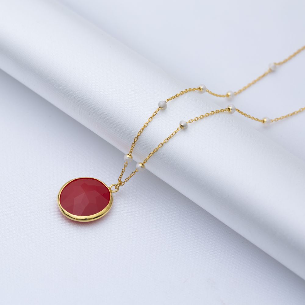 Round Garnet Quartz White Enamel Bezel 925 Silver Necklace - 4.40 g