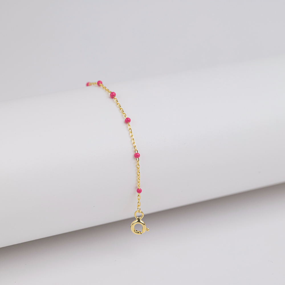 Pink Color Enamel 925 Chain Bracelet - 0.90 g
