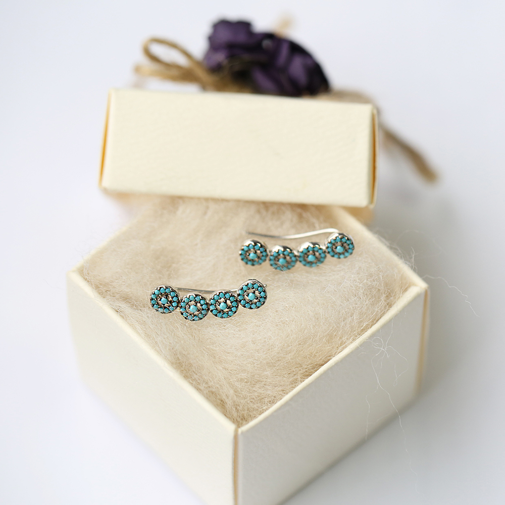 Micro Turquoise Ear Cuff Turkish Wholesale Handcrafted Silver Earring - 2.90 g