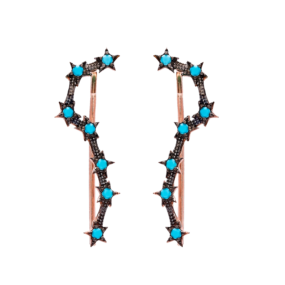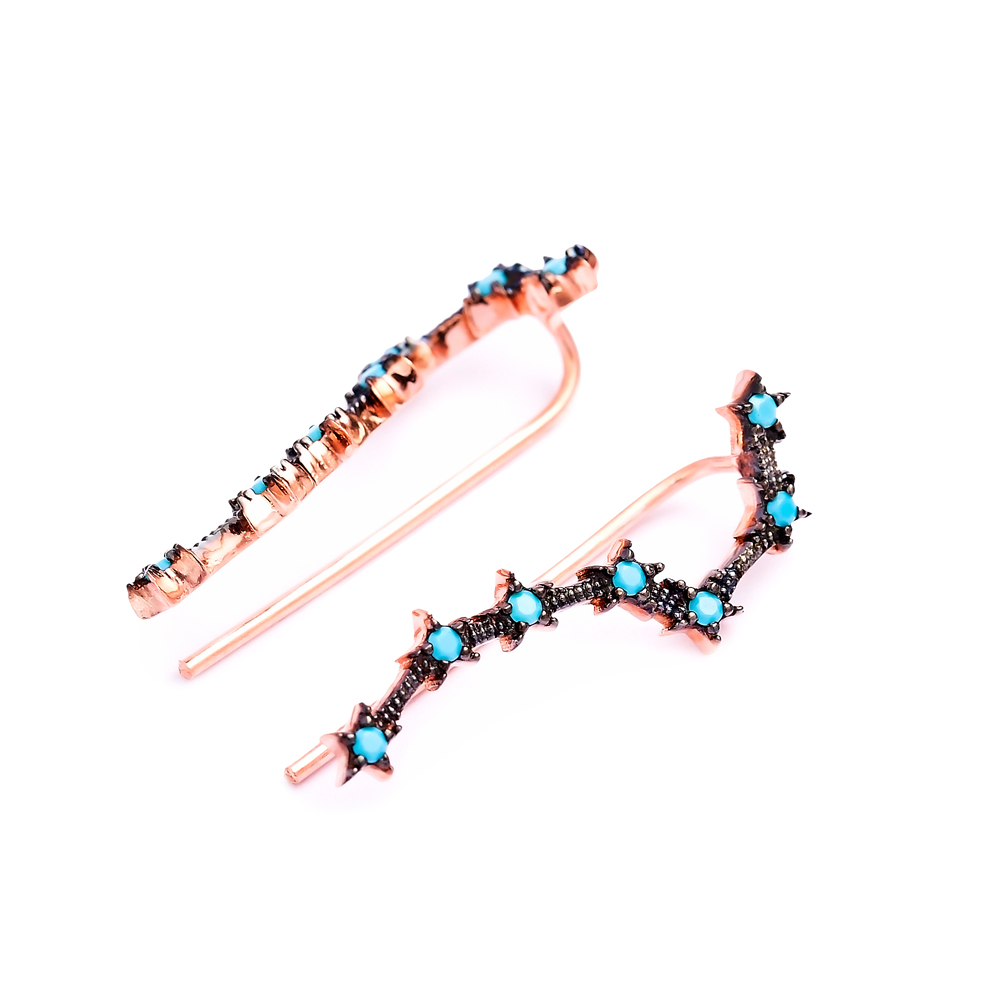 Star Turquoise Cuff Earring Turkish Wholesale Handcrafted Silver Climbers Earring - 1.90 g