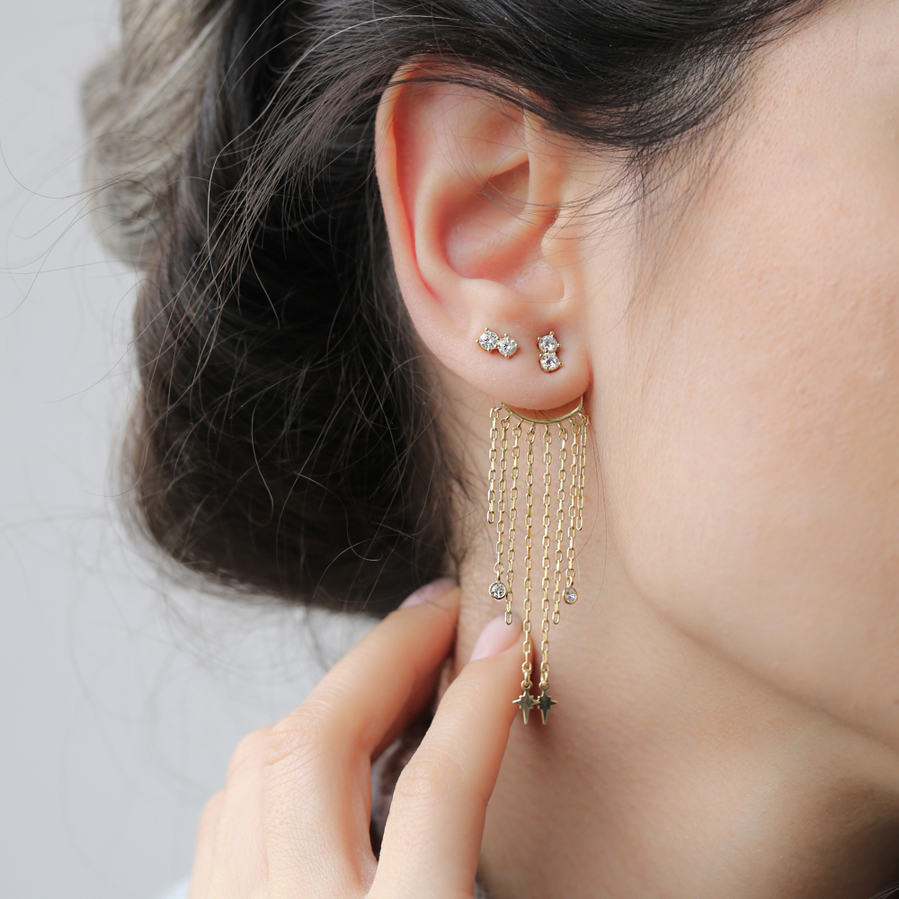 The Chain Unique Design Stud and Long Earrings combine bold design with timeless elegance, making them a standout piece in any jewelry collection. Crafted from premium 925 sterling silver, these earrings feature an innovative chain design that blends the classic allure of studs with the dramatic length of long earrings. The mix of textures and clean lines provides a sophisticated yet edgy look, perfect for fashion-conscious customers. Whether worn together for a complete statement or separately for more subtle elegance, these earrings are versatile enough to complement any style. As a leading wholesale silver supplier, we offer these exquisite earrings at great prices, making them perfect for retailers.