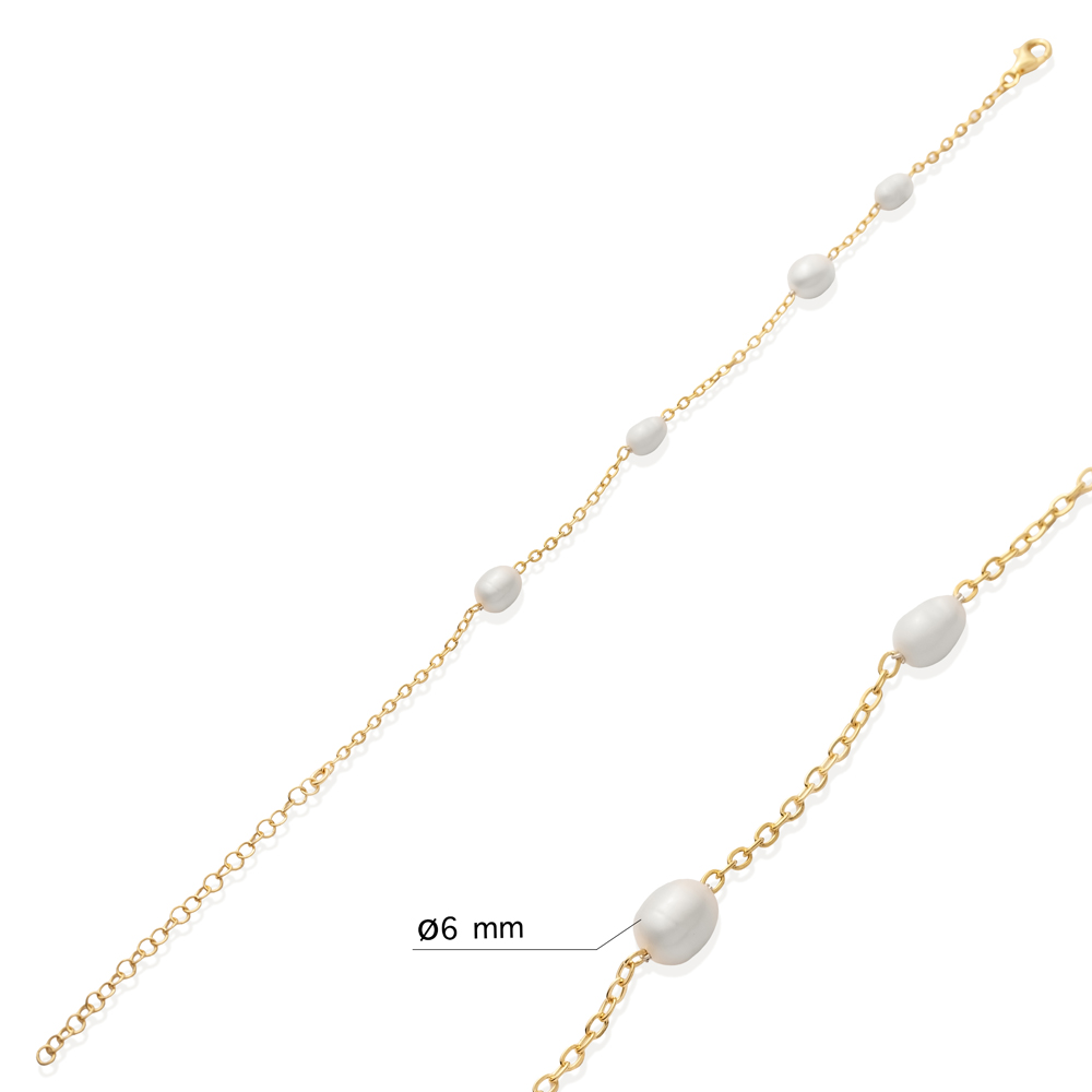 Oval Pearl Design 925 Silver Charm Bracelet - 2.10 g