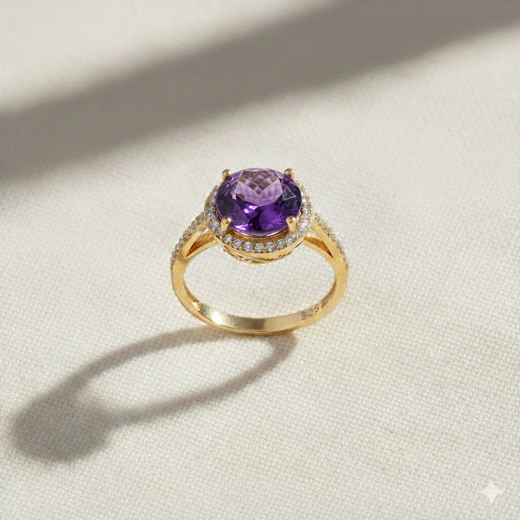 The Round Design Amethyst CZ Stones Cluster Women Silver Ring is a stunning piece that combines vibrant color with an elegant, timeless design. Crafted from 925 sterling silver, this cluster ring features a round design, adorned with amethyst-colored cubic zirconia stones. The deep purple hue of the amethyst stones adds richness and depth to the ring, creating a striking contrast against the sleek silver band.