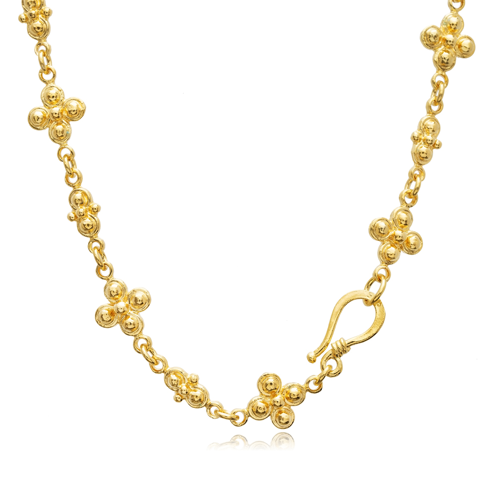22K Gold Plated Flower Design Wholesale Silver Necklace - 26.00 g
