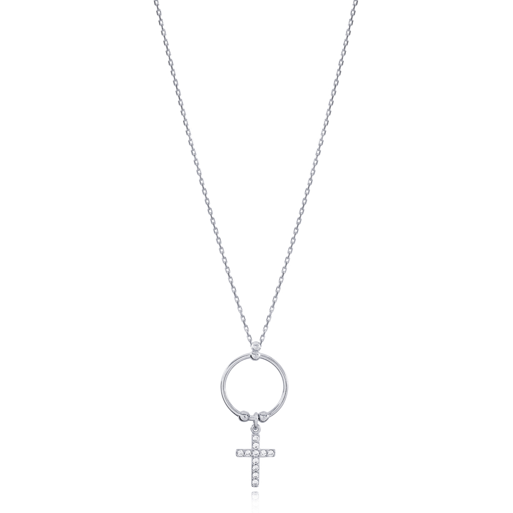 Fashionable Ringed Cross Design Charm Necklace Wholesale Turkish 925 Sterling Silver Jewelry - 3.00 g
