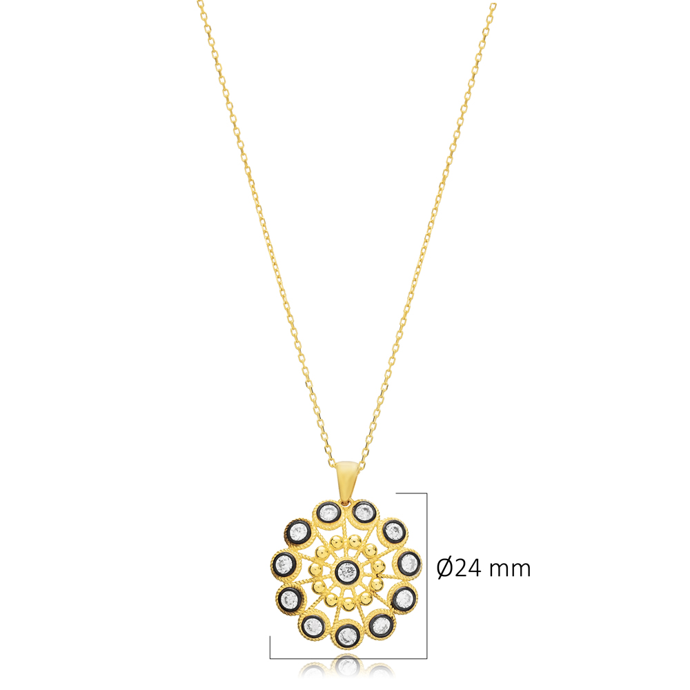 Celebrate delicate craftsmanship with this Round CZ Black Ink Flower Design Charm Necklace, handcrafted in Turkey using premium 925 Sterling Silver. Featuring a finely detailed floral motif enhanced with black ink accents and a brilliant round Cubic Zirconia stone, this necklace combines vintage artistry with modern elegance. Expertly crafted by skilled Turkish artisans, this piece is nickel-free, hypoallergenic, and polished for lasting shine. Perfect for wholesale buyers and fine jewelry retailers seeking authentic, handcrafted silver jewelry with unique design elements. Bulk purchasing and private label services are available.