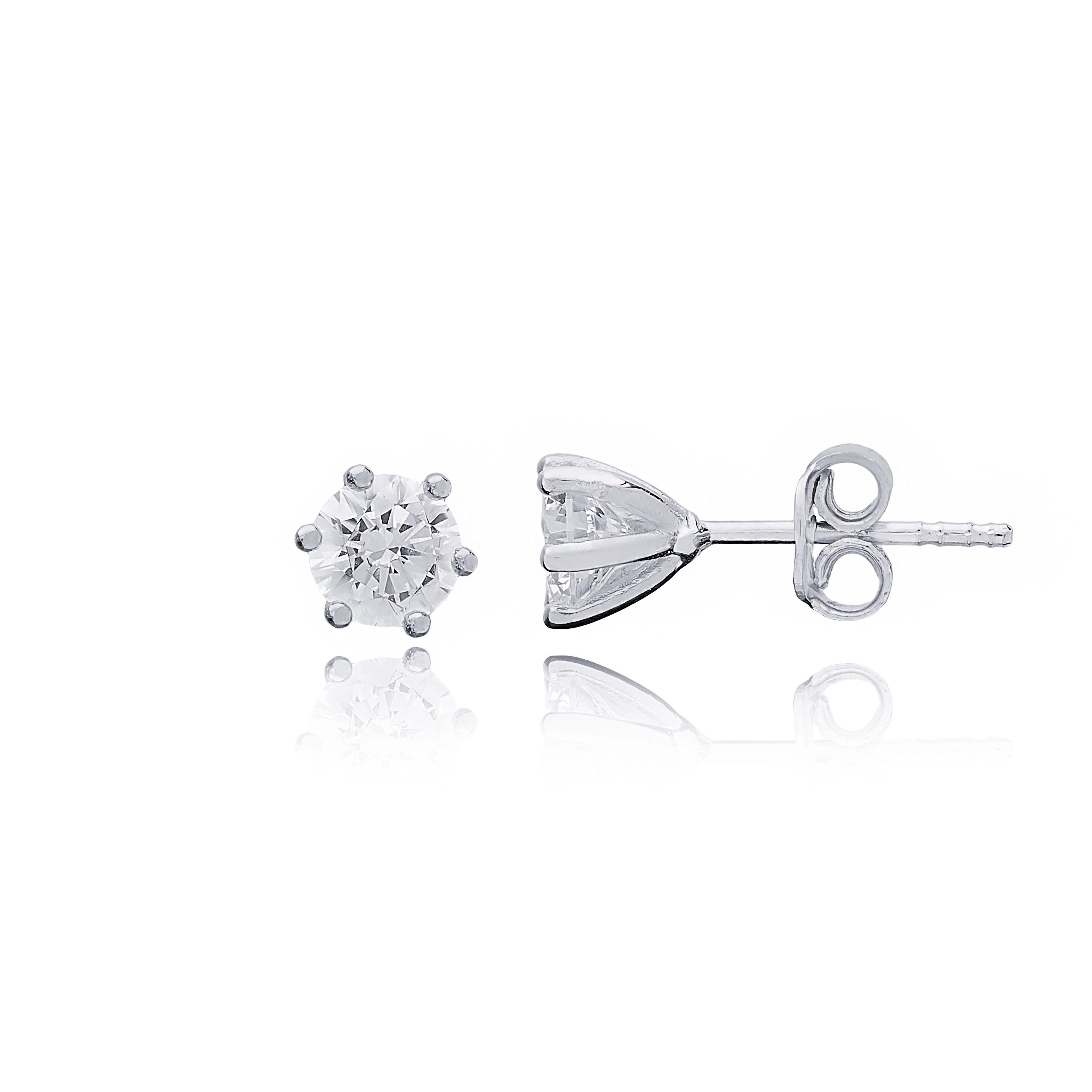 Round Six Claw Zircon Stone Stud Earrings - 1.35 g