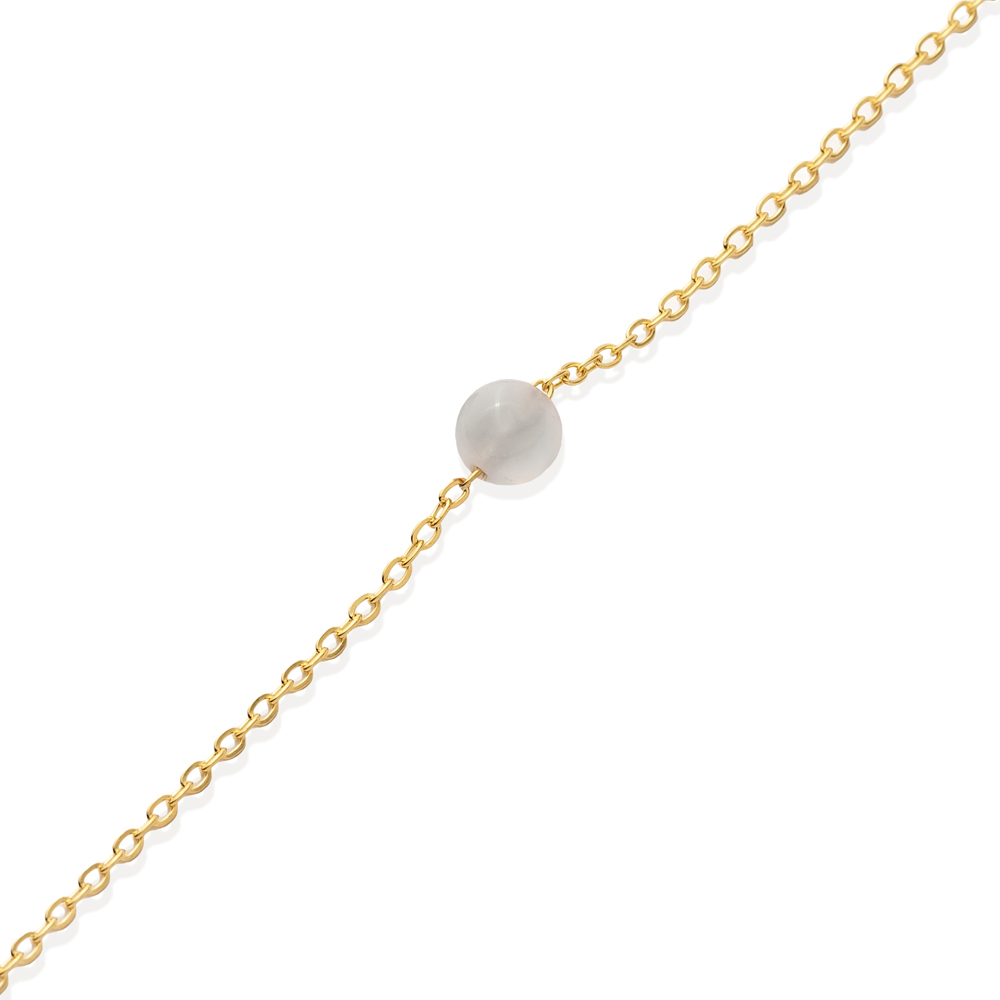 Round White Stone Design 925 Charm Bracelet - 1.70 g