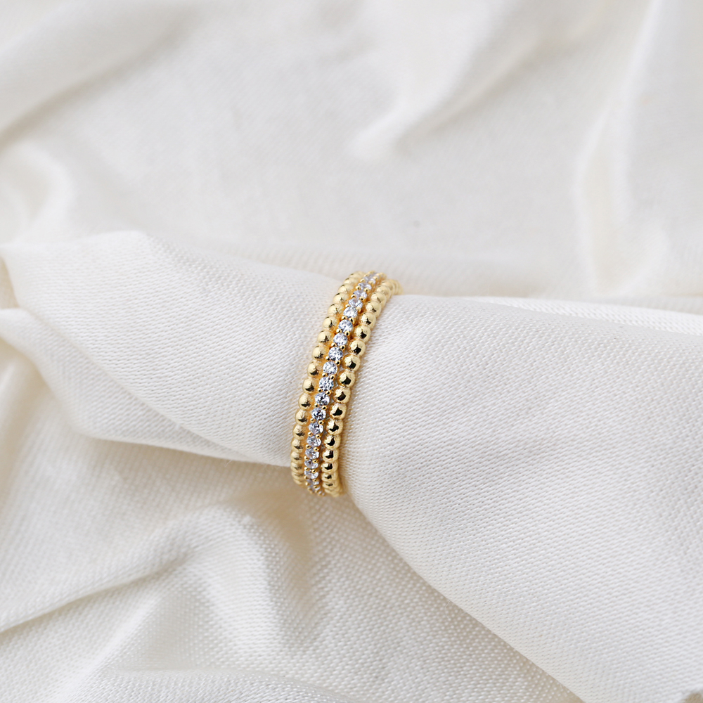 Ball Design Pave Zirconia Stone Band Ring Wholesale Handcrafted Silver Jewelry - 3.45 g