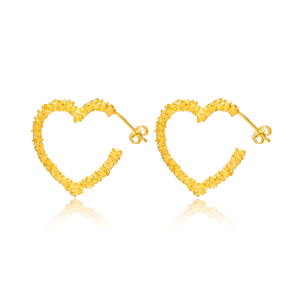 Heart 22K Gold Plated 925 Stud Earrings - 7.15 g