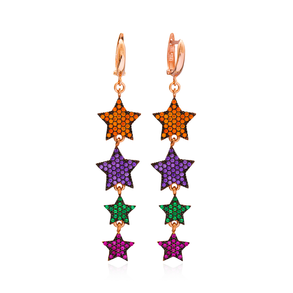 Colorful Long Star Earring Wholesale 925 Sterling Silver Turkish Jewelry