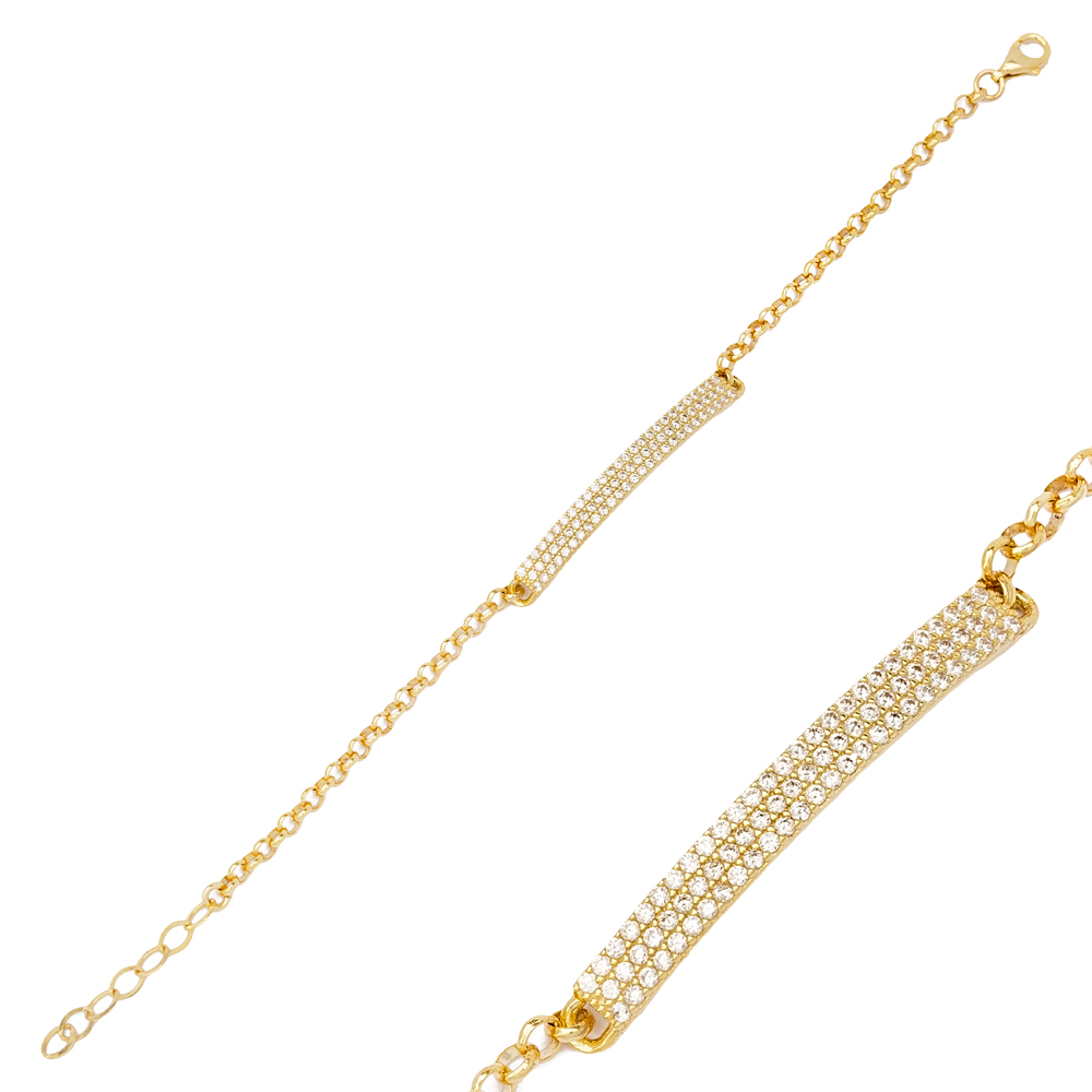Stick Design Shiny Zircon Stone Charm Bracelet Turkish Handmade 925 Sterling Silver Jewelry
