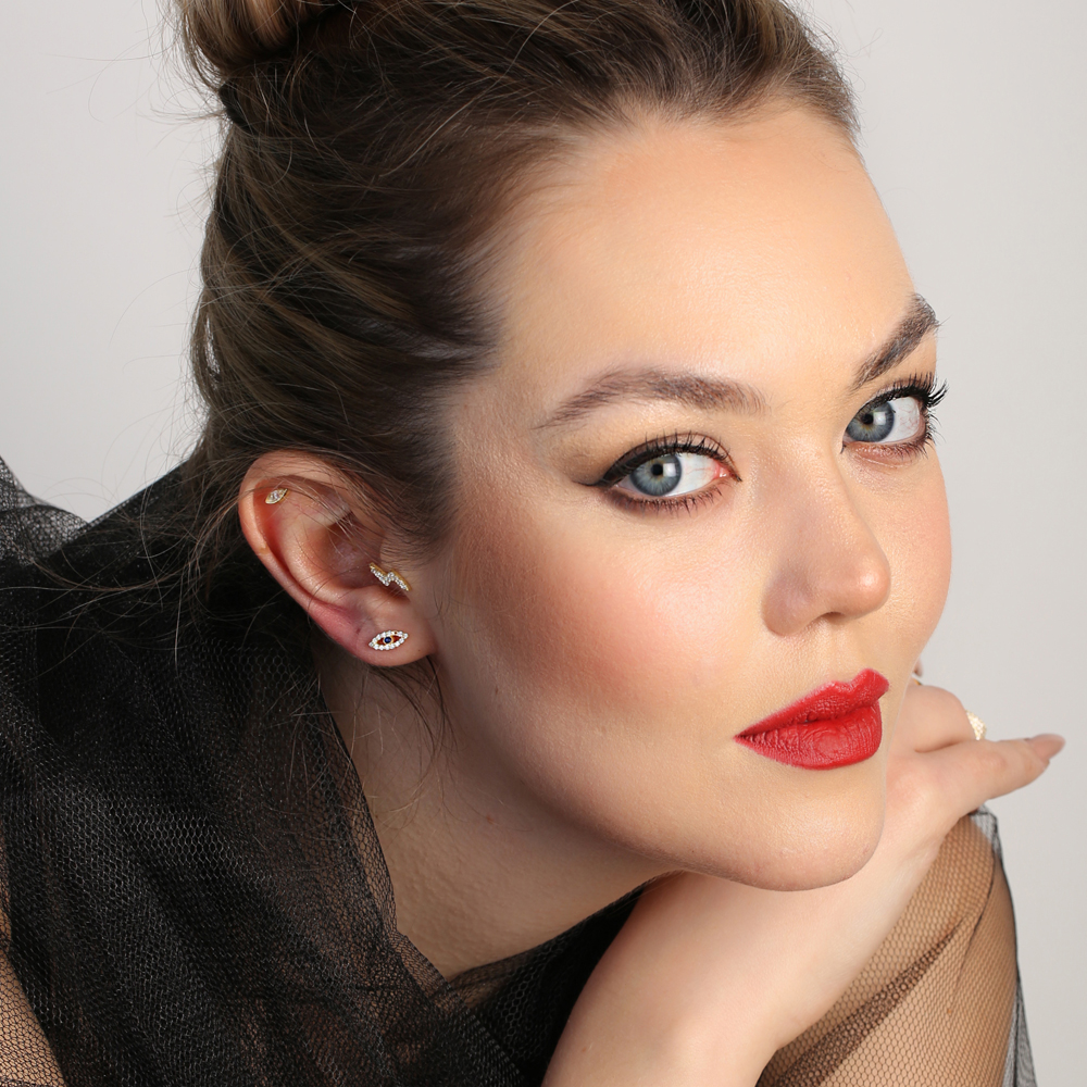 Evil Eye Charm Sapphire Zircon Stud Earrings Turkish Handmade 925 Sterling Silver Jewelry