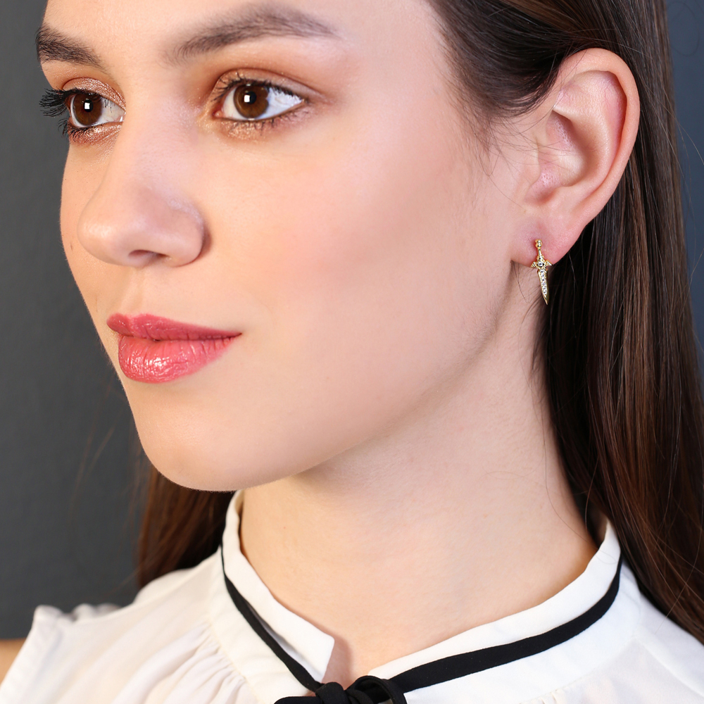 Minimalist Sword Design Zircon Stud Earrings Wholesale Handmade 925 Sterling Silver Jewelry