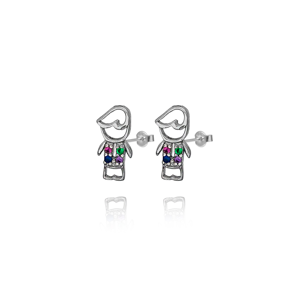 Chain Ring Shape Stud Earrings Wholesale Turkish Sterling Silver Jewelry