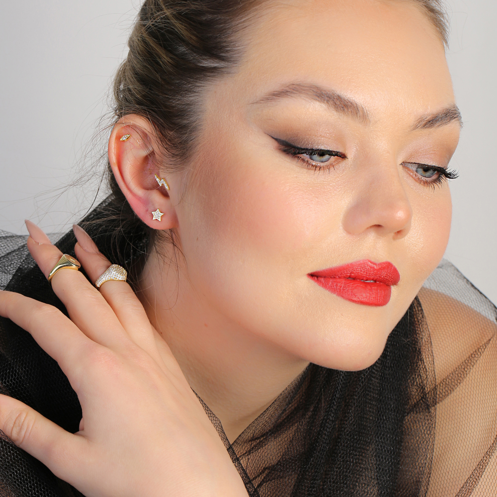 Curve Design Black Enamel Zircon Stone Stud Earrings Turkish Handmade Wholesale 925 Sterling Silver Jewelry