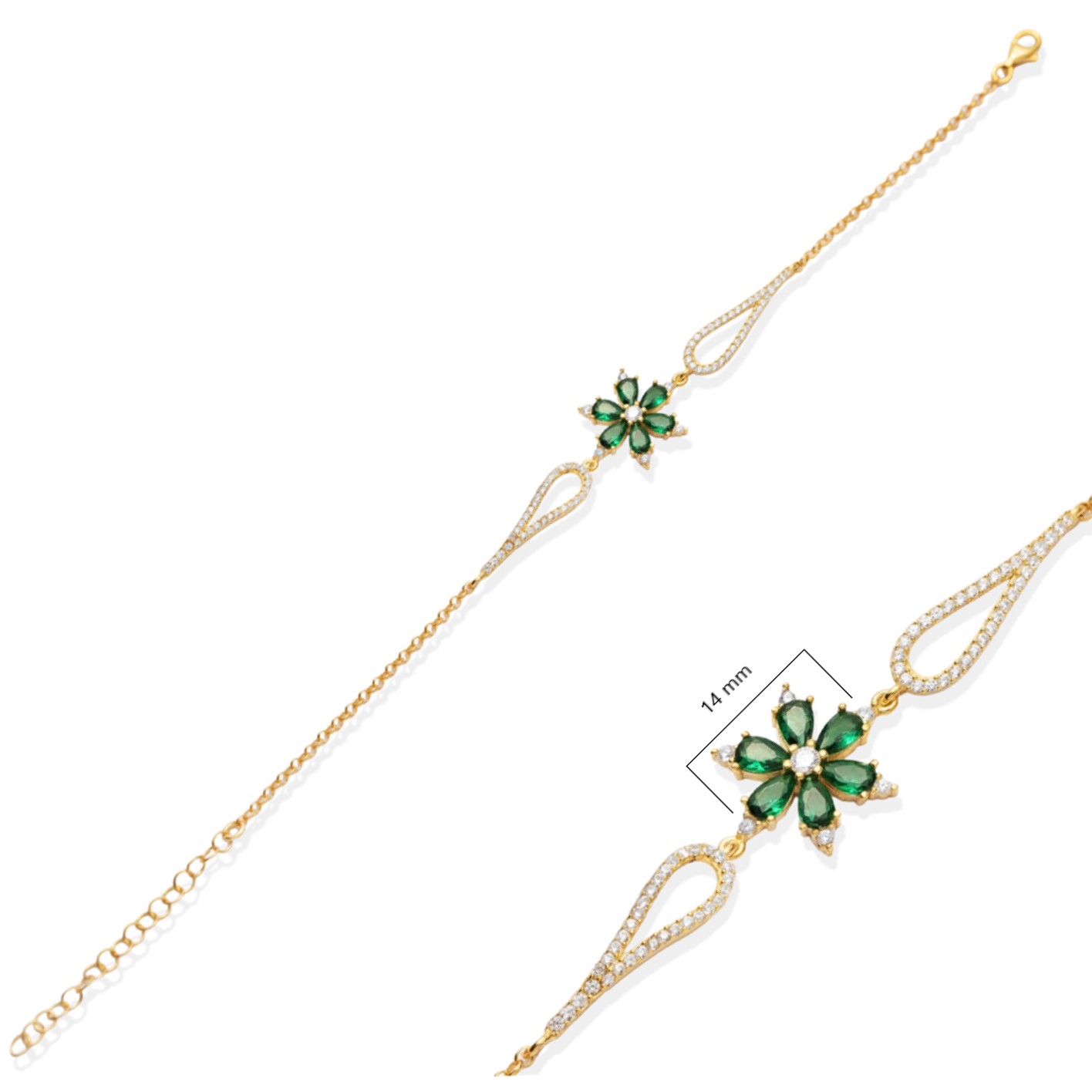 Emerald Flower Design CZ Charm Bracelet - 2.50 g