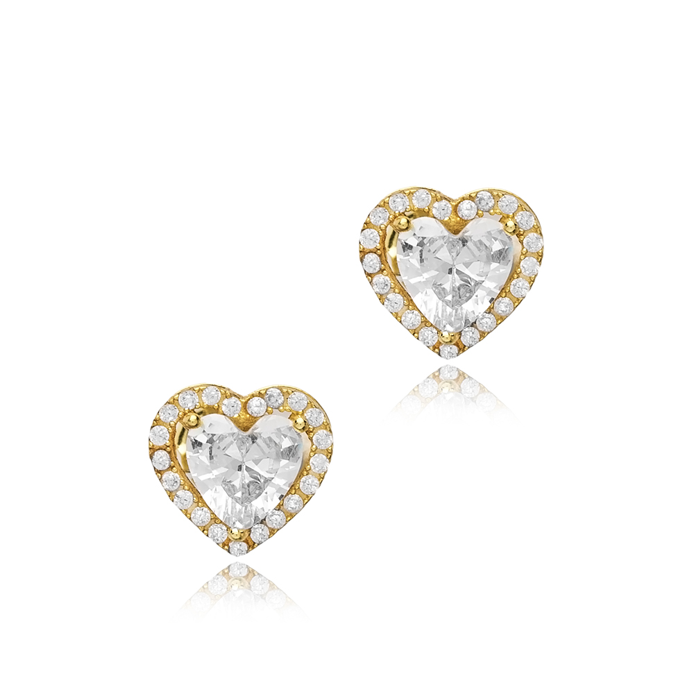 Heart Design Clear Zircon Stone 925 Silver Stud Earrings - 2.85 g